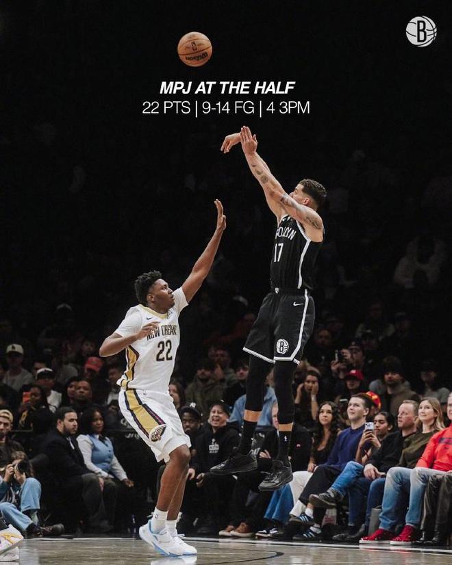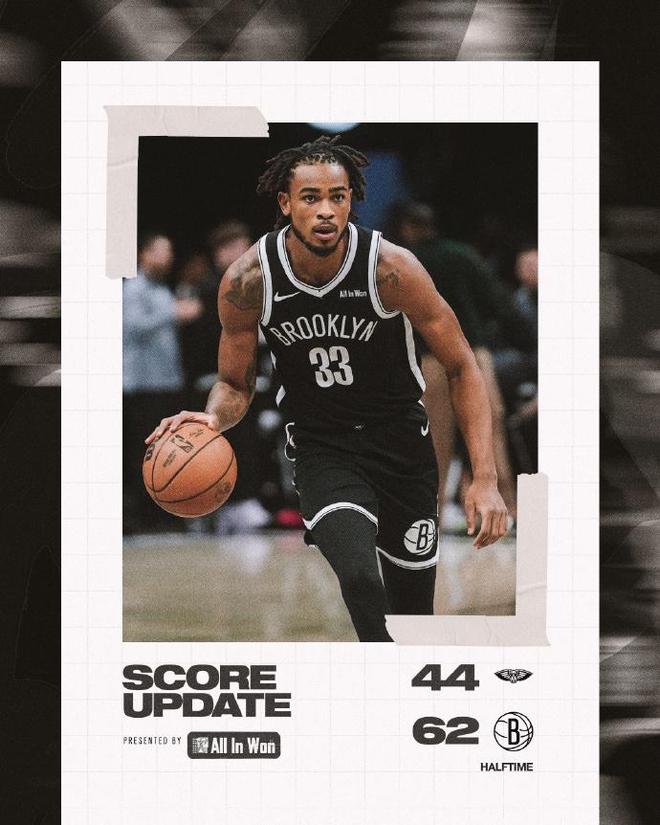 鵜鶘過去5場遭遇5連敗,且前23場只有3勝20負位列聯盟倒數第一,籃網上一場主場110-123輸給爵士。本場籃網缺少托馬斯與海史密斯,鵜鶘缺少錫安、穆雷、普爾與瓊斯多位主力。首節比賽,籃網在前6分半鐘僅14-13領先1分,籃網很快多點開花打出一波16-3攻勢擴大13分優勢,首節結束籃網35-24領先鵜鶘。