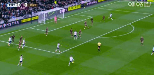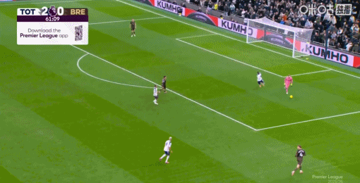 第25分鐘,西蒙斯送助攻,里沙利松輕松破門,熱刺1-0布倫特福德