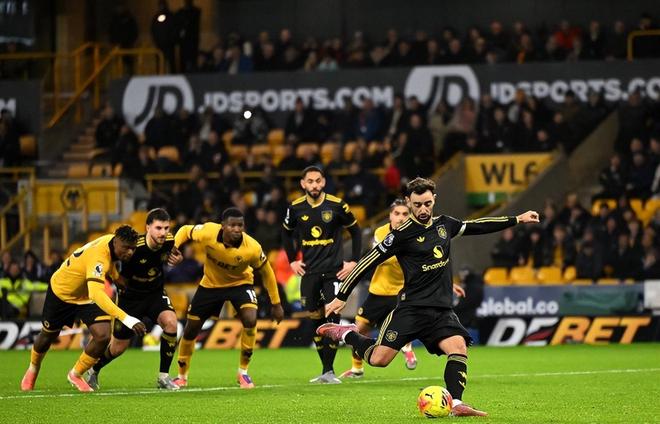 比賽開打后,曼聯便占據主動權,第8分鐘,達洛特左側反越位接球殺入禁區小角度低射被約翰斯通撲出;第25分鐘,曼聯前場積極逼搶造成狼隊回傳失誤,庫尼亞再敲回中路,B費雖然意外滑倒但還是將球打進,1:0!B費英超生涯210次出場已打入65球,據統計,葡萄牙球員中只有C羅的進球數比他更多,C羅在英超為曼聯出場236次打入103球。